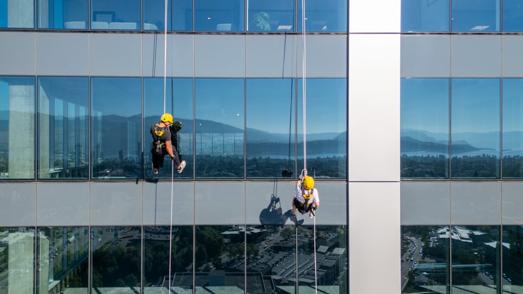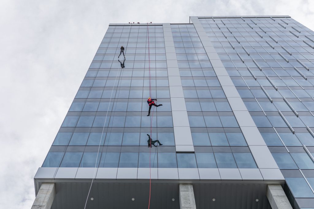 Three of our fearless Super Hero Realtors® rappelled 23 stories down the Landmark 7 Office Tower in Kelowna's vibrant Landmark District!